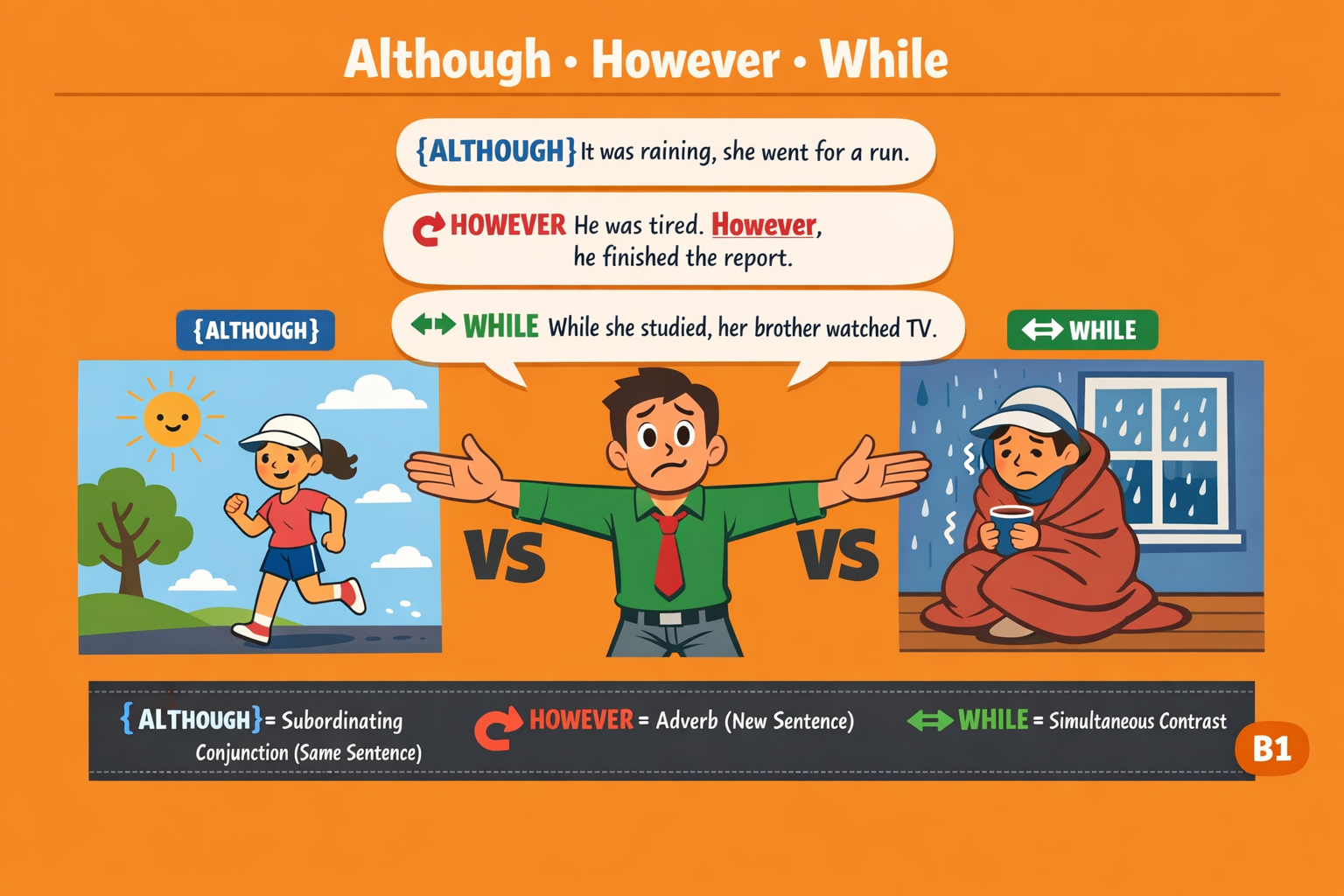 Time Connectors: Although, However, While